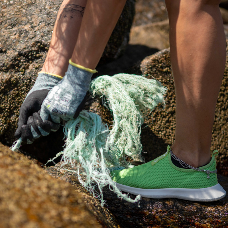 - Materiais: Poliéster de pet reciclado, EVA verde, Biolatex e Poliamida Biodegradável